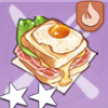 | 獣肉サンドイッチ | 満腹度が20Pt回復 炎耐性15%、炎耐性675アップ、1,200秒持続 | 獣肉の脂身×1 ジミカ麦×2 鳥類の卵×2 |